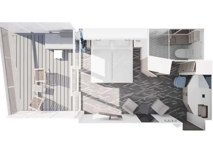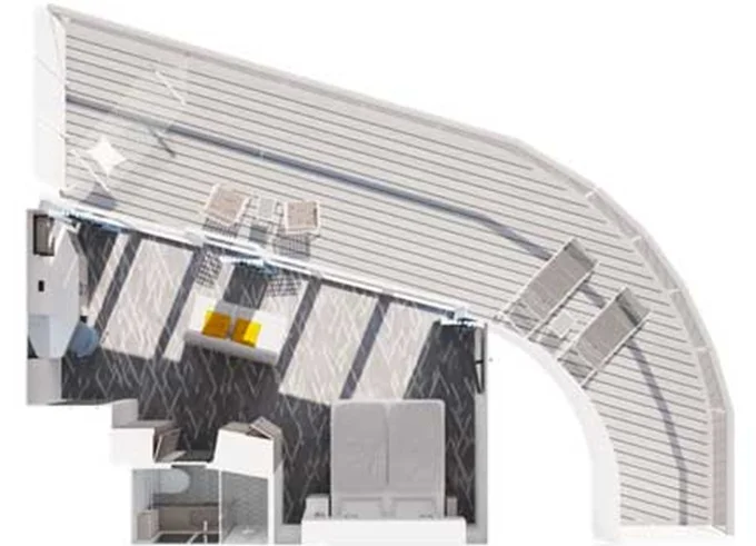 | VEKO - Kajuta s terasou 20 m² + balkón 13 m² so stoličkami a váľandou. 15. paluba. Max 2 osoby. | 5 804 € 5 804 € za osobu | ||