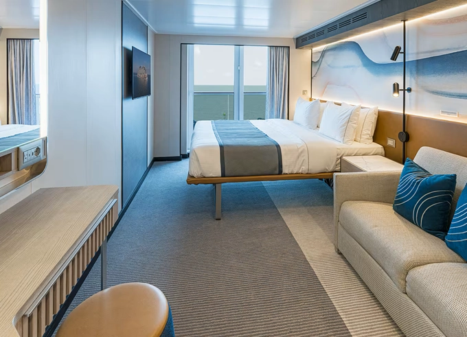 | MB - Club Suite Forward-Facing s balkónom 22 - 25 m² / balkón 7 m². 9. až 13. paluba - vpredu. Max 2 osoby. Výhody Club. | 4 688 € 2 344 € za osobu | ||